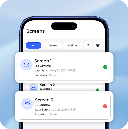 Select your screens and push updates live. No store visits. No cables.
