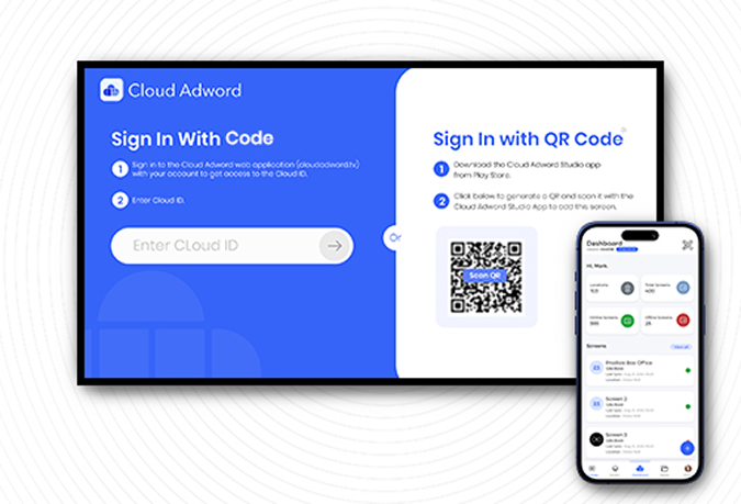 Add each screen with a quick code and onboard it instantly.